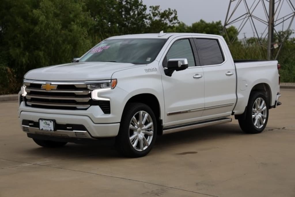 HIGH COUNTRY may be the perfect combination of luxury and capability. The chrome and bronze grille features the iconic Chevrolet bowtie emblem front and center. Chrome assist steps, a power-up-down tailgate, LED cargo area lighting, a Chevytec spray-on bedliner and several advanced safety features are all standard. Inside, heated and ventilated front bucket seats with perforated leather seating surfaces, heated rear outboard seats and a Bose sound system provide the comforts of home. A Chevrolet Infotainment Premium system with Navigation and an 8-inch Driver Information Center display bring the technology to another level. Plus, High Country offers 8 cameras that give you up to 15 unique views that come in handy when you need to get hitched up, back up, or just maneuver the road around you.