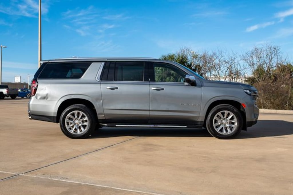 With the 2023 Suburban with the Premier trim level we have too much of a good thing is a myth. From 20-inch polished-finish aluminum wheels to full-feature power-folding outside mirrors, enhancements are everywhere. A smooth ride is a near certainty with Magnetic Ride Control suspension, and you will enjoy the confidence of numerous advanced safety features. Inside, heated and ventilated front bucket seats with perforated leather seating surfaces await, along with power-release heated second-row bucket seats and a power-folding third row. There is also a Bose Centerpoint Surround Sound 10-speaker system.