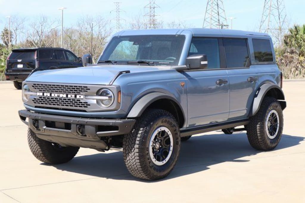 Azure Gray Metallic 2025 Ford Bronco Badlands 4WD 10-Speed Automatic 2.7L EcoBoost V6 Bronco Badlands, 4D Sport Utility, 2.7L EcoBoost V6, 10-Speed Automatic, 4WD, Azure Gray Metallic, Black Onyx Leather.